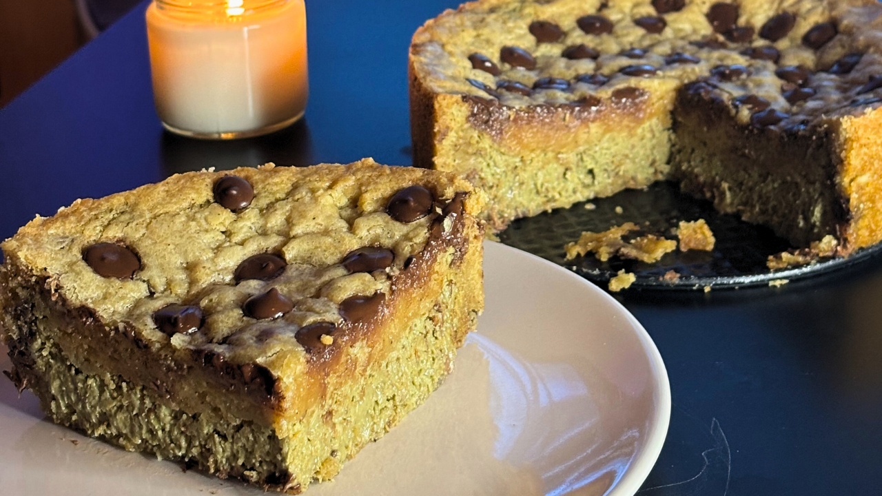 Buttery chocolate chip cookie dough baked to perfection, hiding a heart of silky pistachio crème, delicate layers of kataifi, and a touch of smooth milk chocolate. Golden and gooey, with a rich, nutty twist—this 18cm pie is the ultimate treat for pistachio lovers.