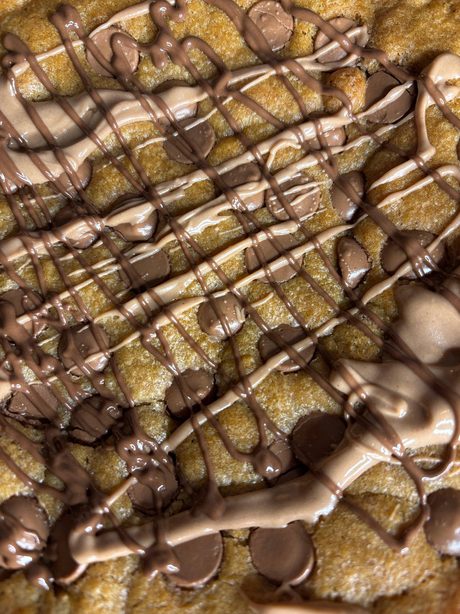 Soft, melt-in-your-mouth chocolate chip cookie dough, baked until perfectly golden, filled with a lush center of Nutella, whole Kinder Buenos and a velvety hazelnut Bueno cream. Each slice is a mix of gooey, crunchy and creamy textures that come together in pure chocolate-hazelnut bliss. This 18cm show-stopper is a luxurious treat crafted for everyone who can’t resist the magic of Nutella and Bueno.